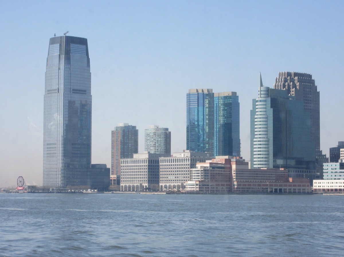 Jersey City Published May 5, 2015 at 2048 × 1536 Jersey City The tall building is Goldman Sachs and is the tallest building in New Jersey at 86(ish) floors. On the far left (where the Colgate sign is)is the largest clock in the world.